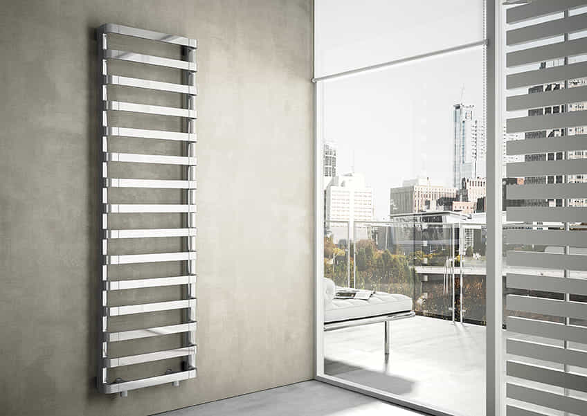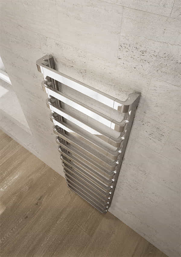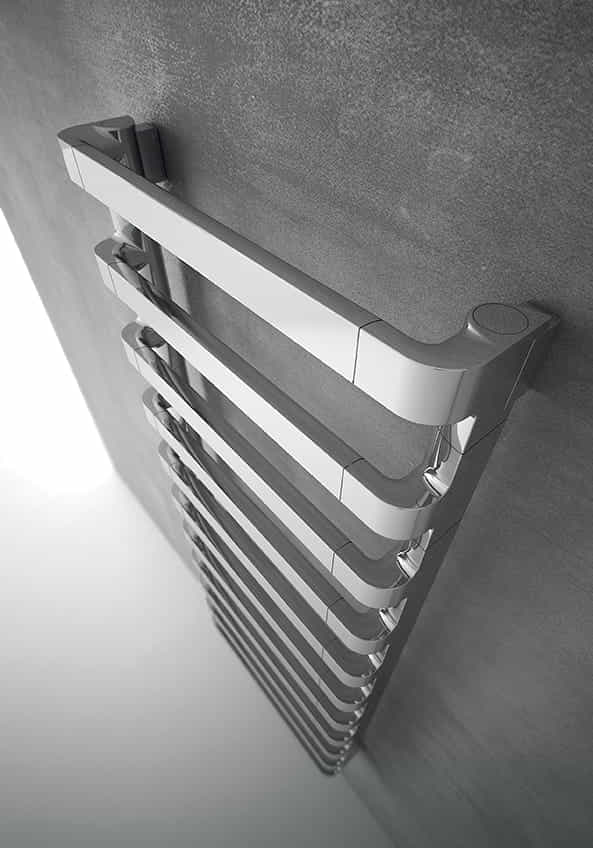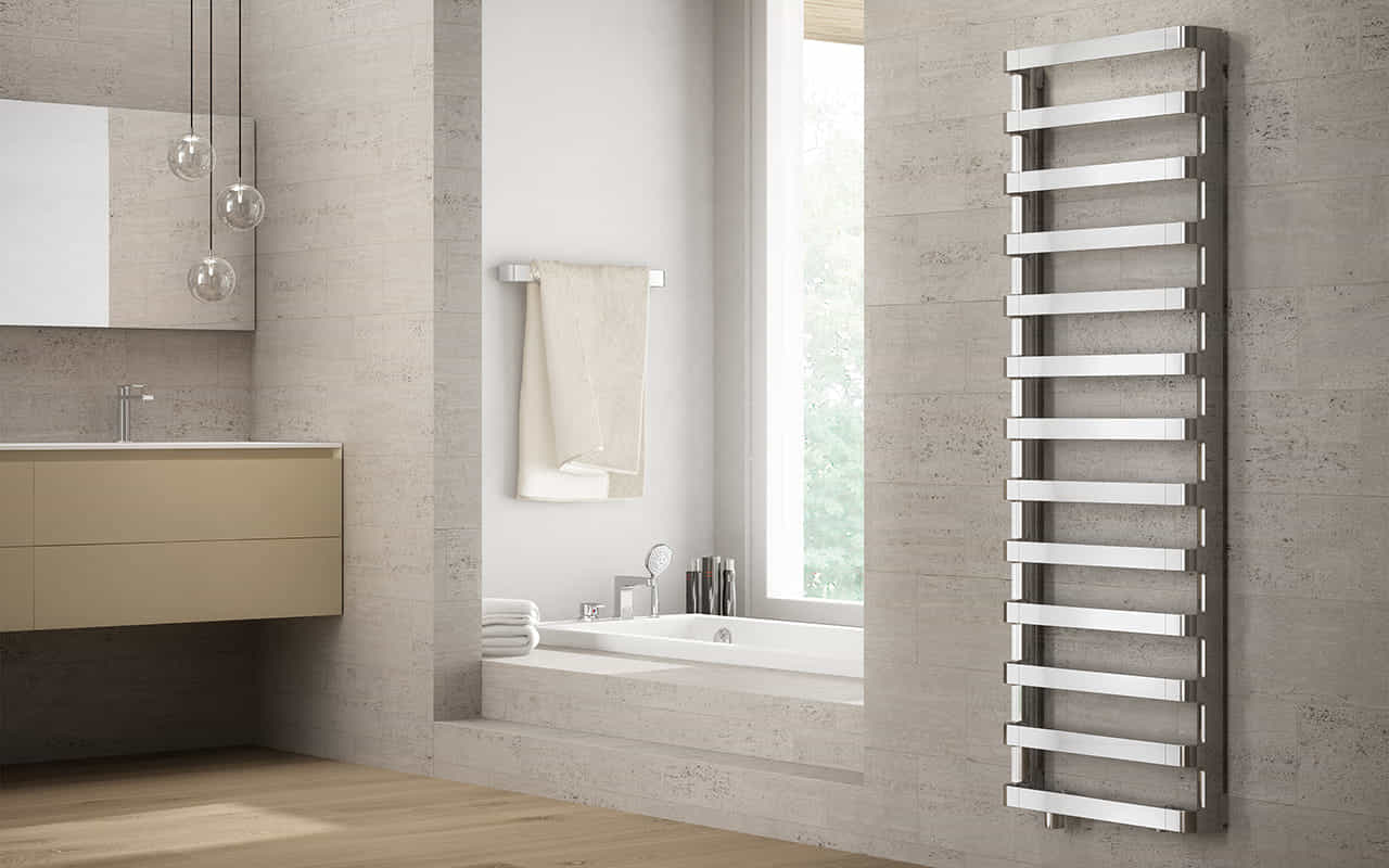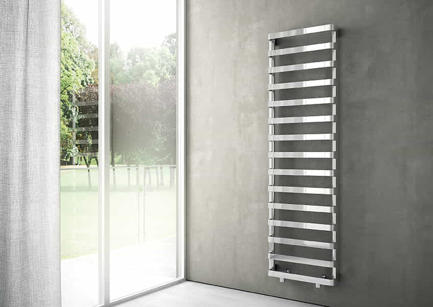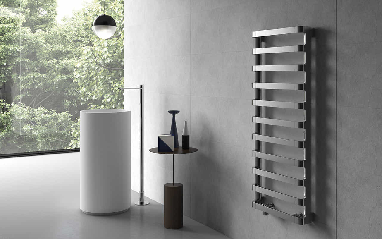 Il radiatore IRSAP STEP_B unisce la geometria essenziale degli elementi orizzontali a spazi ampi e ben distribuiti per accogliere gli asciugamani, diventando così la soluzione di design ideale per ambienti bagno moderni.