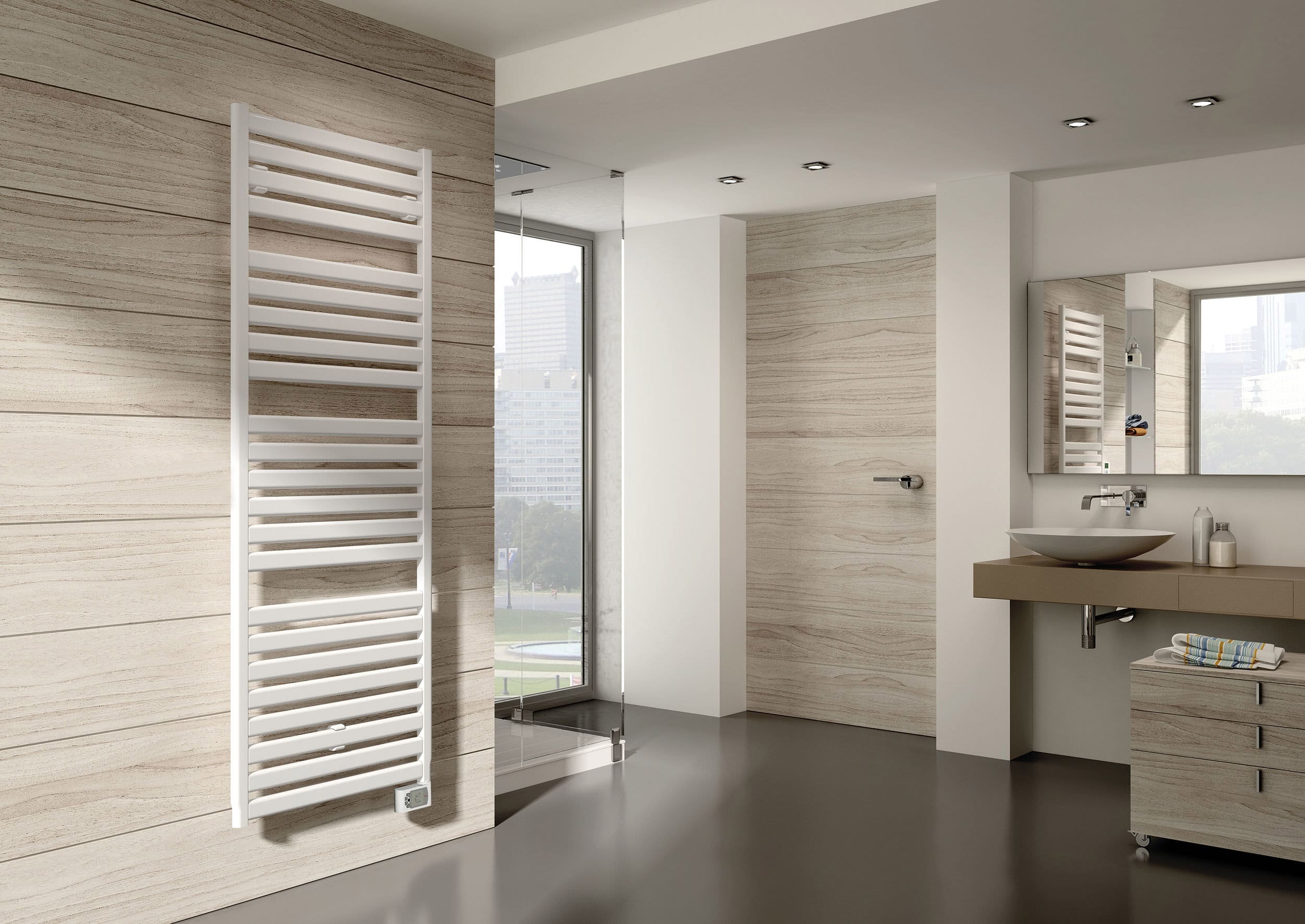 Il radiatore Irsap VELA Elettrico si distingue per il profilo piatto dei tubi orizzontali, che crea un gioco geometrico raffinato e moderno, perfettamente integrabile in qualsiasi ambiente abitativo. Il suo design, essenziale ma di carattere, lo rende un oggetto funzionale e decorativo al tempo stesso. Nella versione solo elettrica, VELA è la soluzione ideale per abitazioni prive di impianto di riscaldamento centralizzato o in quegli spazi dove l’allaccio non è conveniente. Disponibile in 4 altezze e nella larghezza di 560 mm, è dotato della nuova ed esclusiva resistenza elettrica WiFi, fornita in tinta con il radiatore, per una perfetta armonia estetica.